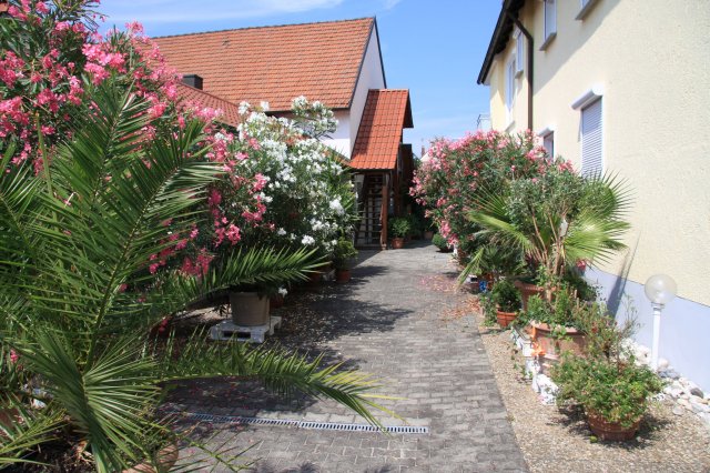 Im nebenstehenden Gebäude befindet sich für die WG eine Waschmaschine und ein Trockner.